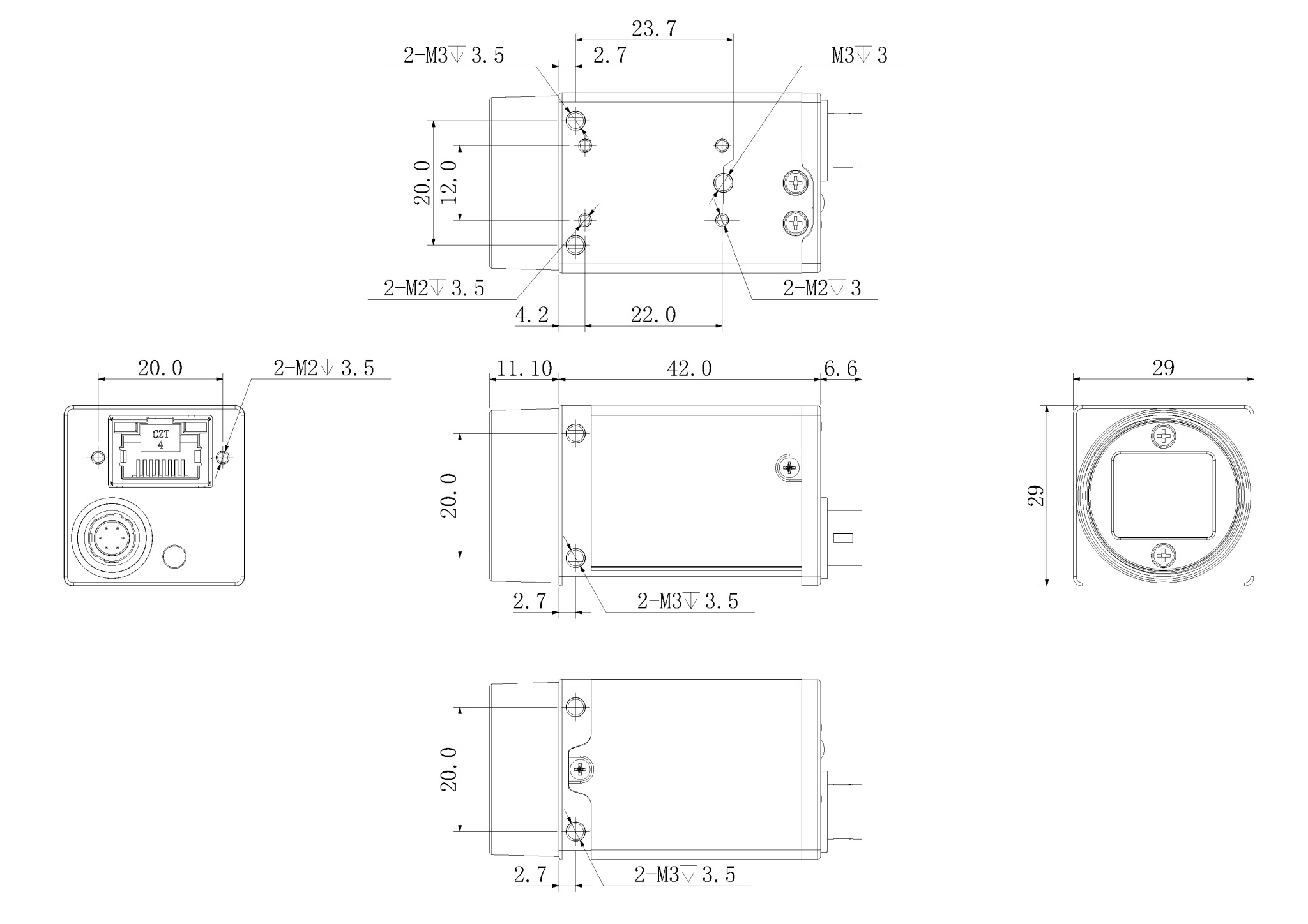 ● 千兆以太网接口,提供1Gbps 带宽,最大传输距离可到100m; 256MB 板上缓存用于突发模式下数据传输或图像重传; 支持软件触发/硬件触发/自由运行等多种模式; 支持锐度,降噪,伽马校正,查找表,黑电平校正,亮度,对比度等 ISP 功能; 彩色相机支持插值,白平衡,颜色转换矩阵,色度,饱和度等; 支持多种图像数据格式输出,ROI,镜像等; 符合GigE Vision V2.0协议和GenICam标准; 支持POE供电,DC9-24V宽压供电; 符合CE,FCC,RoHS认证。