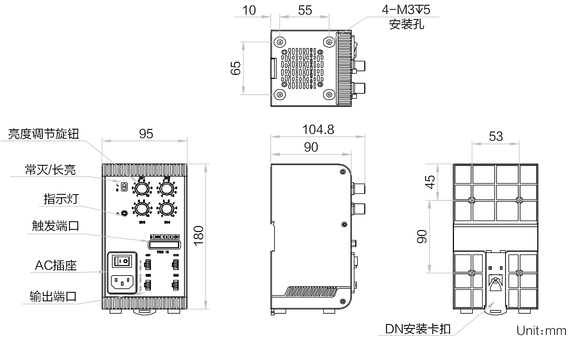 名称 | 模拟恒压光源控制器,60W,4通道SMR-03V-BC接口 |