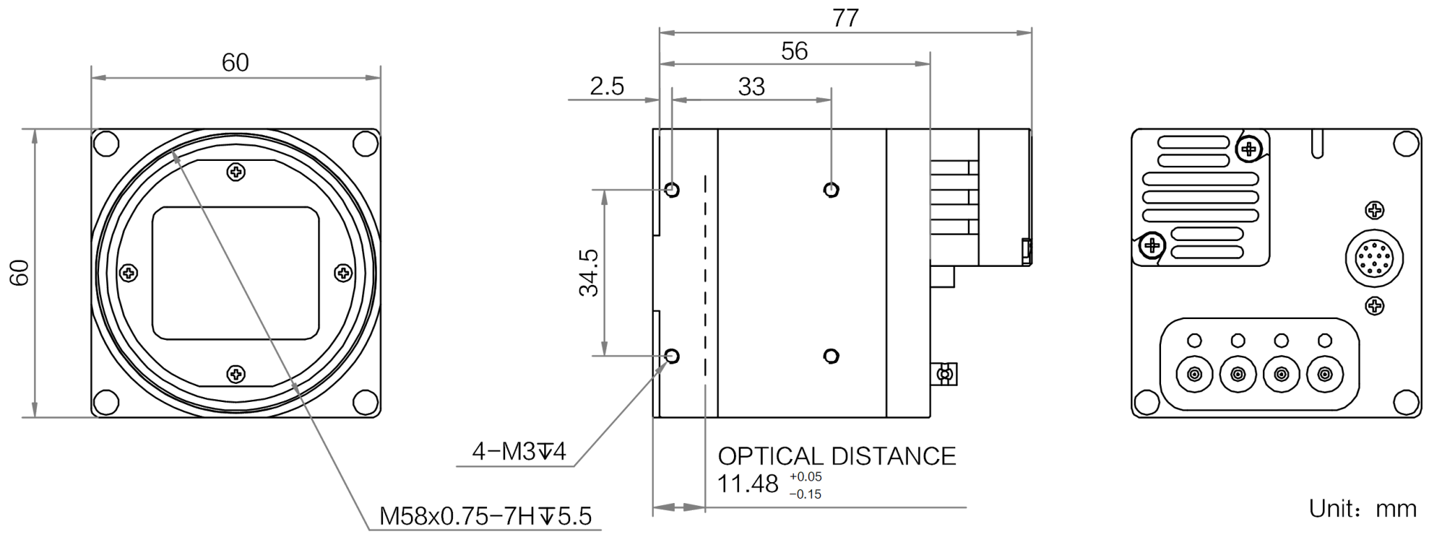 结构 | 镜头接口 | M58*0.75镜头接口,法兰后焦11.48 mm |