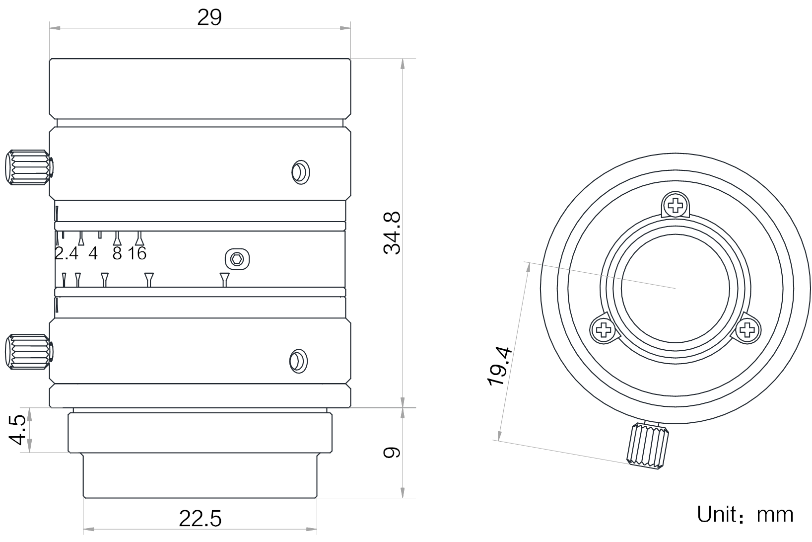 | 外形尺寸 | Φ29×34.8 mm |