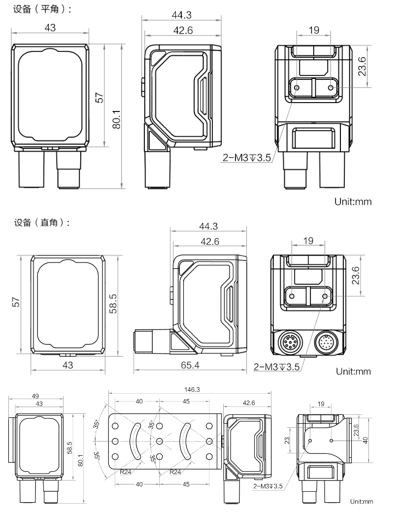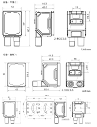 外形尺寸 | 平角:80.1 mm × 43 mm × 44.3 mm 直角:58.5 mm × 43 mm × 65.4 mm |