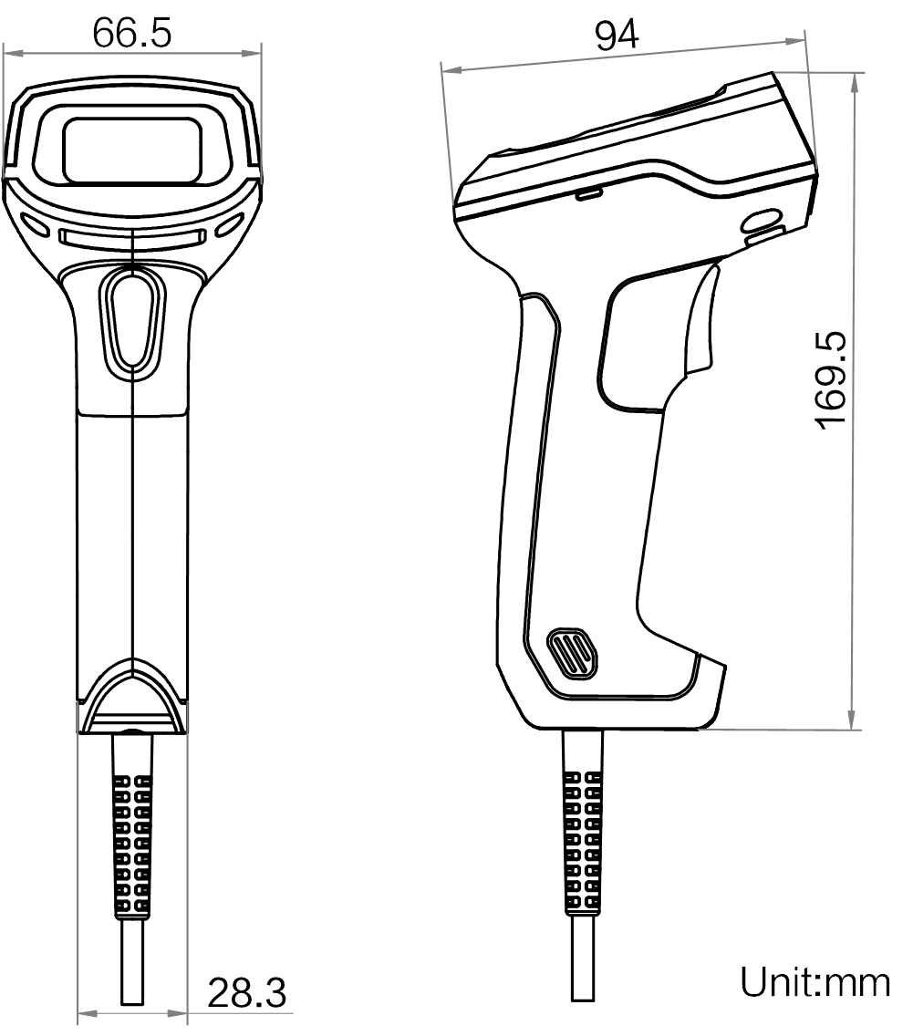 景深 | EAN13(13 mil):30 ~ 240 mm Code 39(5 mil):50 ~ 100 mm Code 128(10 mil):30 ~ 240 mm Data Matrix(10 mil):40 ~ 130 mm QR Code(15 mil):15 ~ 205 mm |