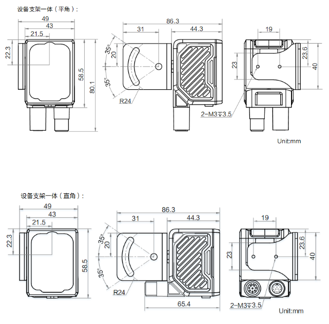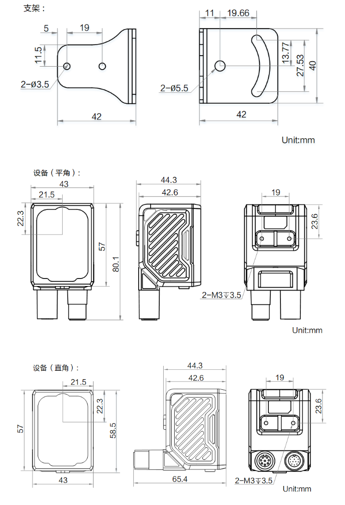 外形尺寸 | 平角:80.1 mm × 43 mm × 44.3 mm 直角:58.5 mm × 43 mm × 65.4 mm |