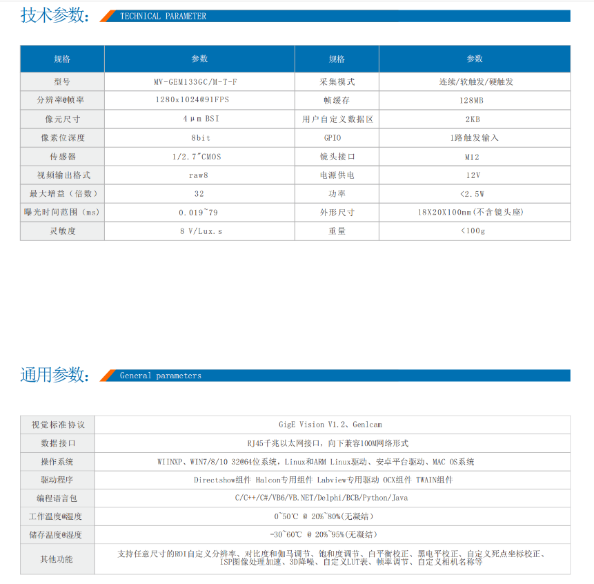 MindVison迈德威视 MV-GEM133GM-T-F 笔式相机