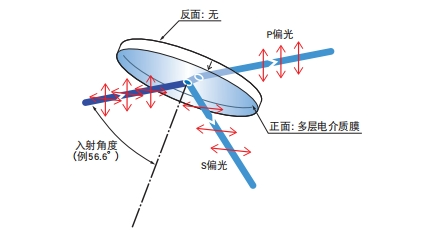 ▶平板型偏光分光镜的反面没有镀防反射膜。(以布鲁斯特角入射P偏光反射率为0%)