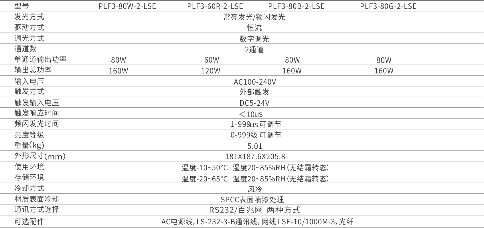 注:光源配用1.5米光纤,通光直径6mm,调光等级999实测值,仅供参考