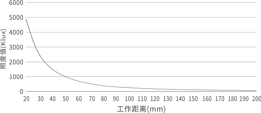 工作距离与照度曲线(代表例:PLF3-80W-2-LSE)