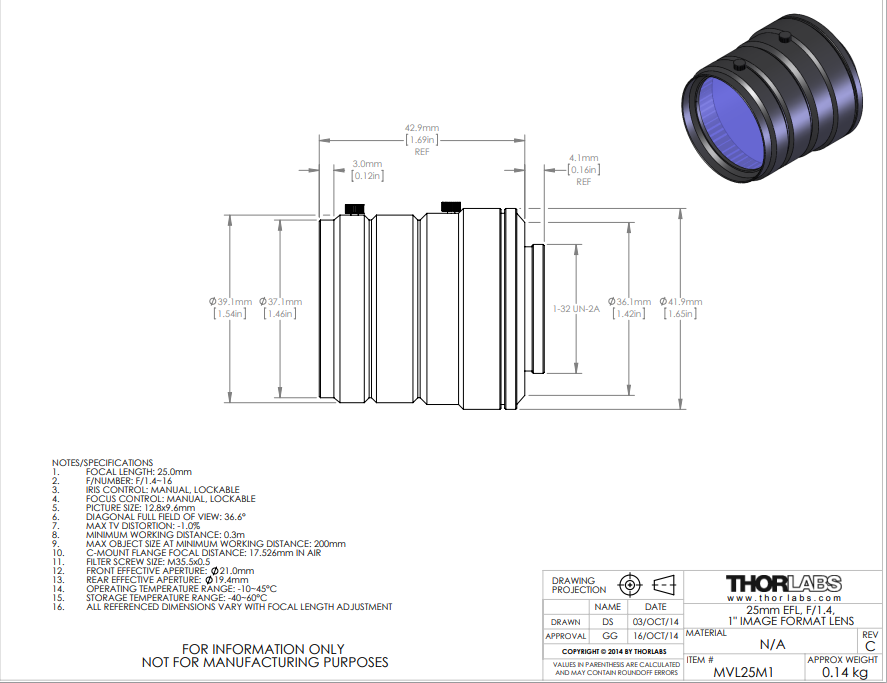 Thorlabs索雷博 MVL25M1 定焦镜头