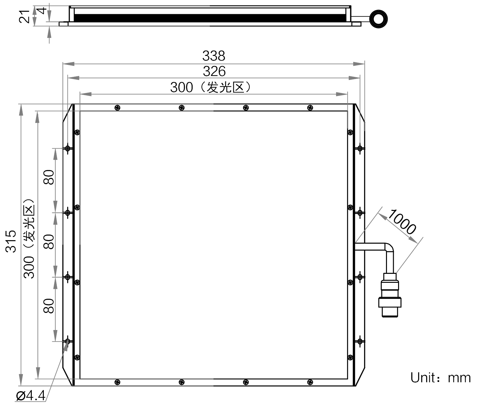 结构 | 外形尺寸 | 338 mm × 315 mm × 21 mm |