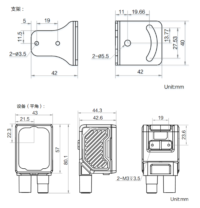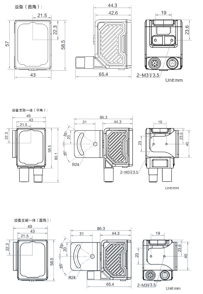 外形尺寸 | 平角:80.1 mm × 43 mm × 44.3 mm 直角:58.5 mm × 43 mm × 65.4 mm |