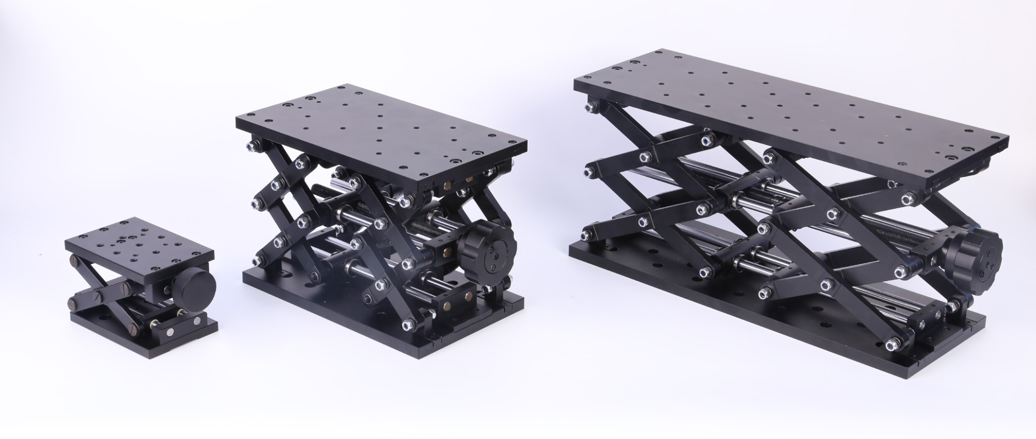 MJ 系列是卓立汉光推出大行程手动升降滑台。该系列产品主体材料采用2024 铝合金,表面氧化黑处理,采用剪式升降结构,精研丝杆驱动,具有自锁功能,结构稳定,调节方便快捷,适用于大行程粗定位的手动调节场合。