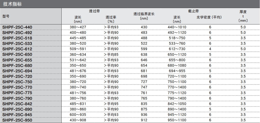 zolix卓立汉光 SHPF-25C-945 短波通滤光片