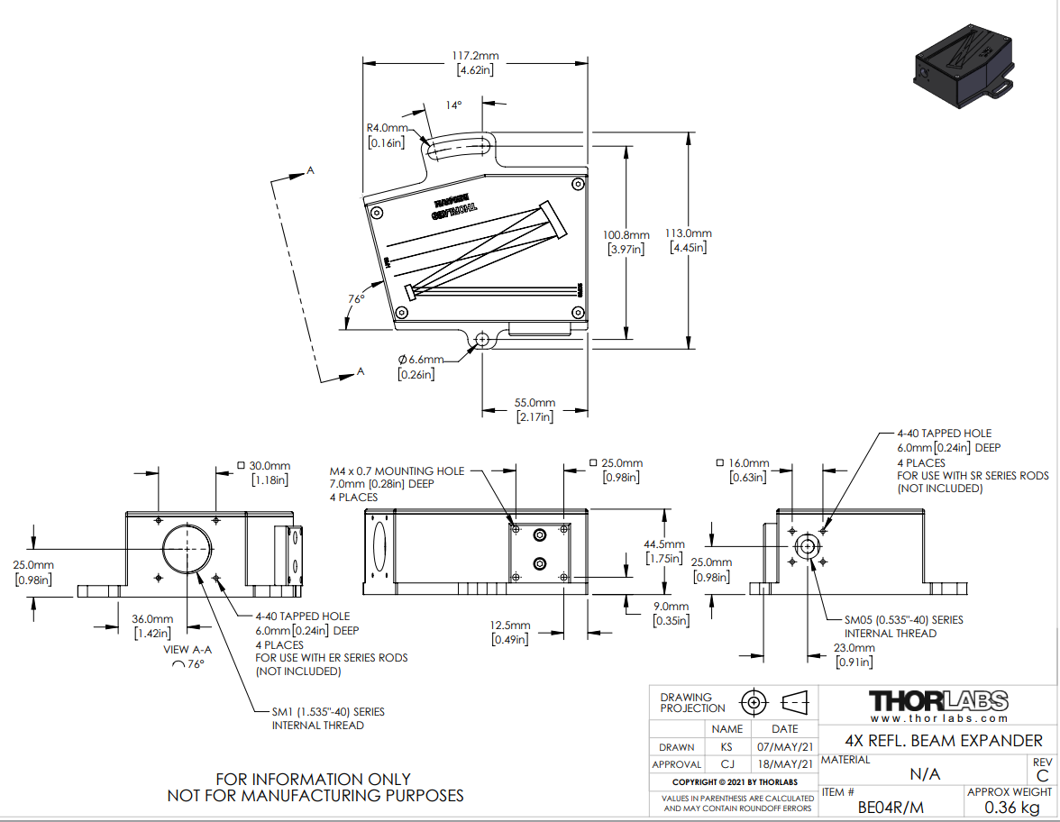 Thorlabs索雷博 BE04R/M 反射型光束扩束器