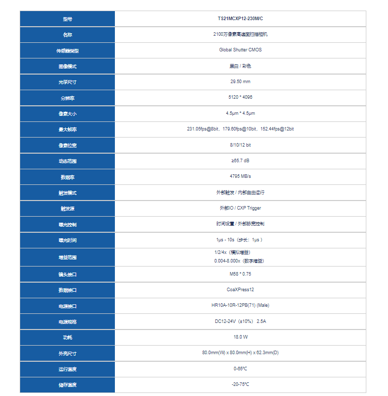 I-Tek埃科 TS21MCXP12-230M/C 高速面扫描相机