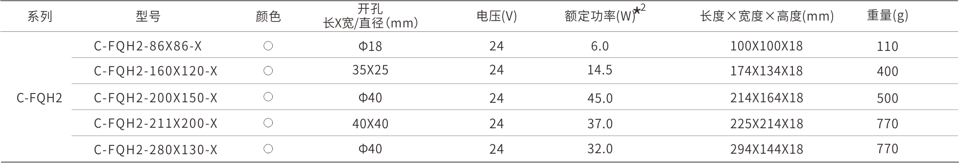 *2 实际产品功率与功率表内容相差±10%为正常范围