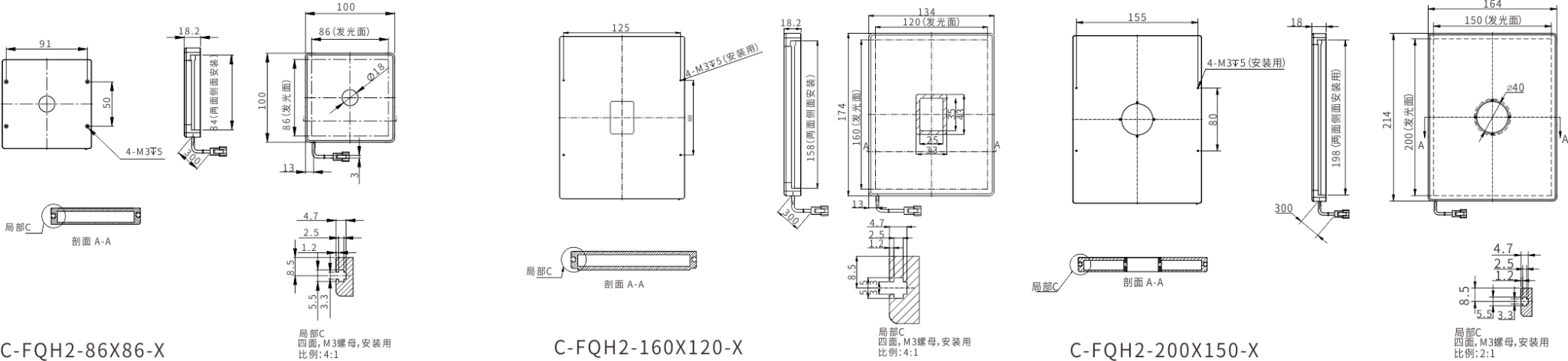 高亮度、大幅面的正面照明背光源应用领域:物体尺寸测量产品定位及有无检测可透射物体表面检测