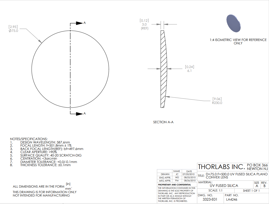 其中,n是折射率,R是透镜表面的曲率半径。这些透镜由阿贝数为67.82的紫外级熔融石英制成;阿贝数是色散指标。