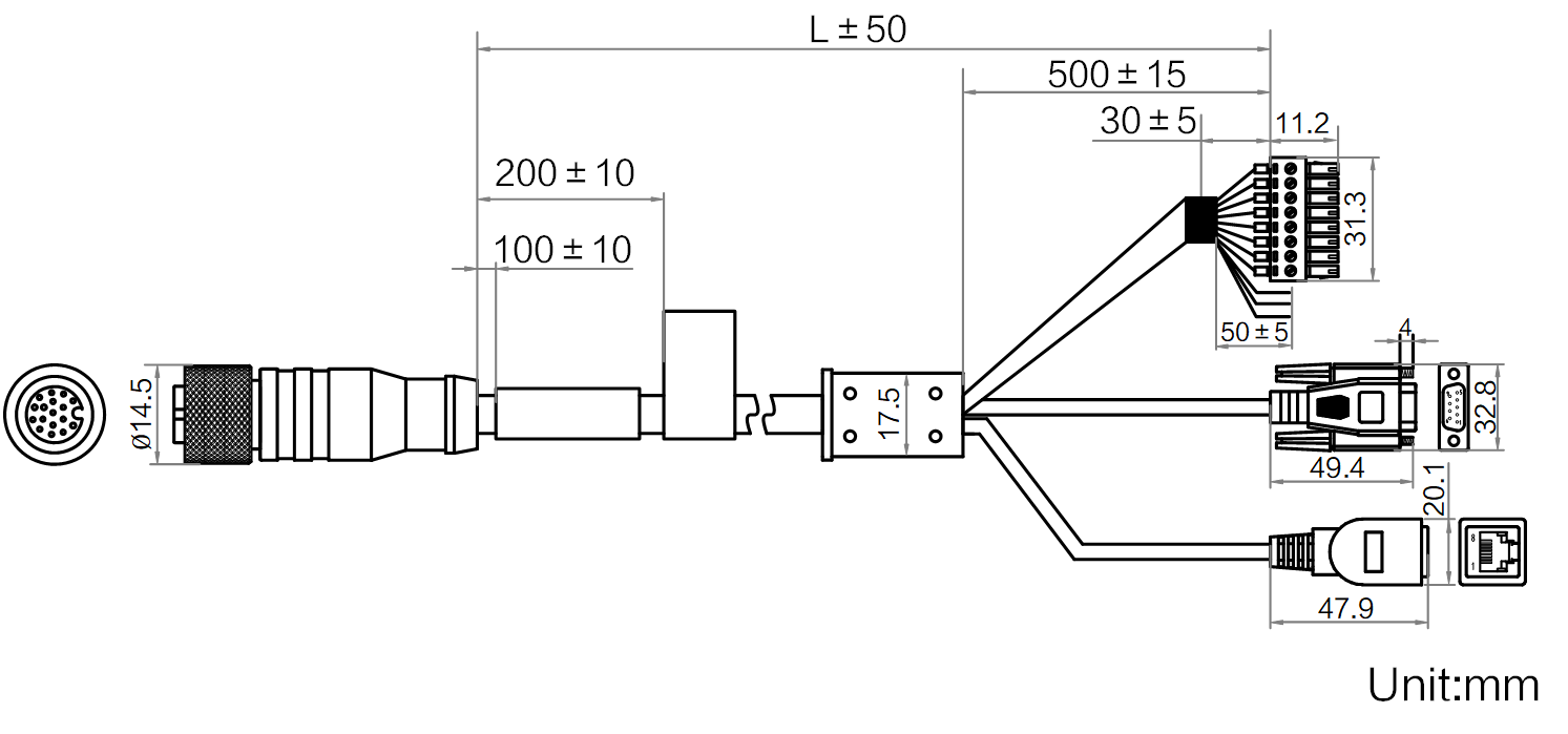 | 名称 | 一体线网口母头高柔,3米,17pin转open/RJ45/DB9 |