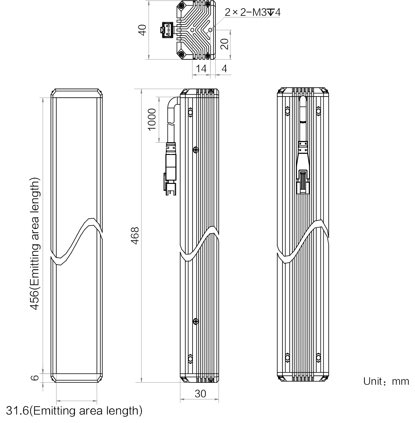 发光区尺寸 | 456 mm × 31.6 mm |