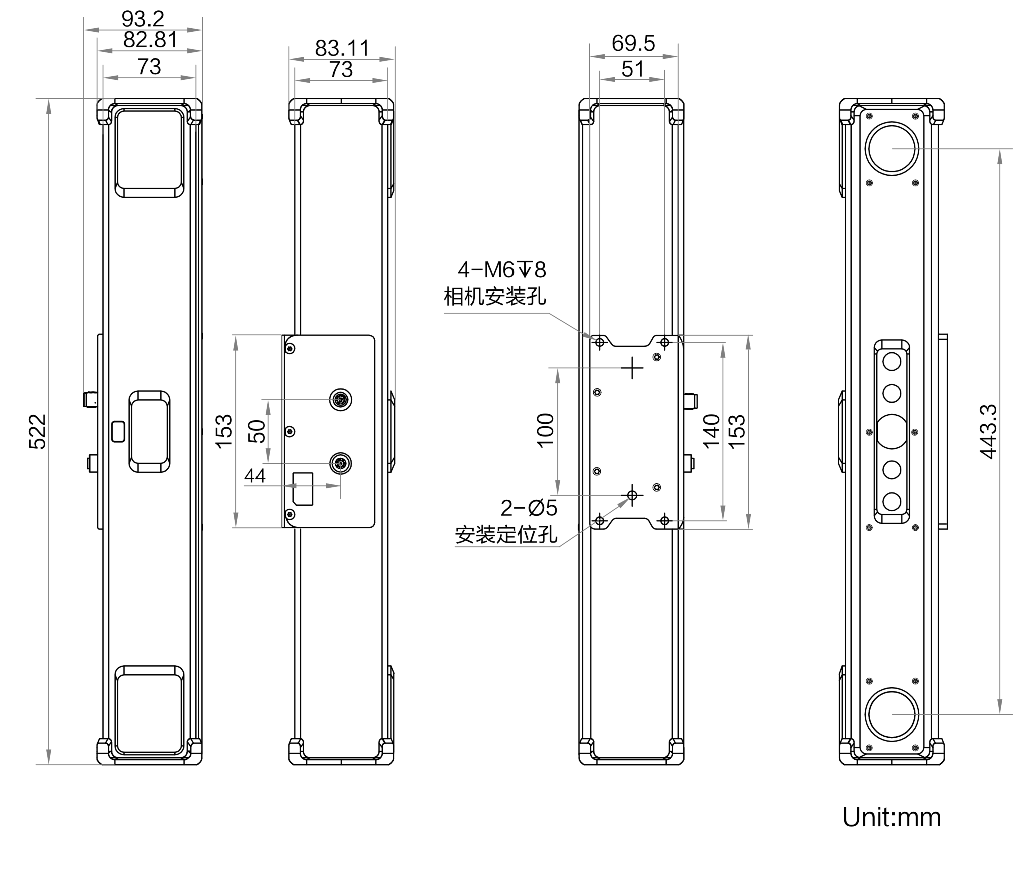 结构 | 外形尺寸 | 522 mm × 82.8 mm × 83.1 mm |