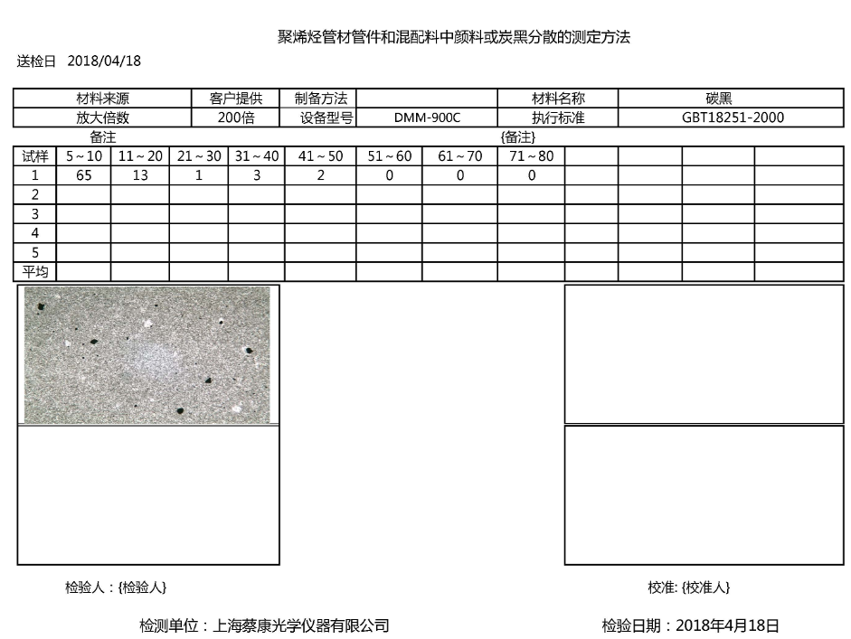 碳黑分析软件 | 管材炭黑检测分析软件,符合国家标准-GB/T 18251-2000,主要功能模块:1、自动分析 2、图像处理 3、新建报告及打开报告 4、几何测量功能 5、定倍打印 6、图像合成。具有测量,叠加比例尺,自动评级功能,符合国标的造粒炭黑粒子尺寸分布及粒径的测定。 |