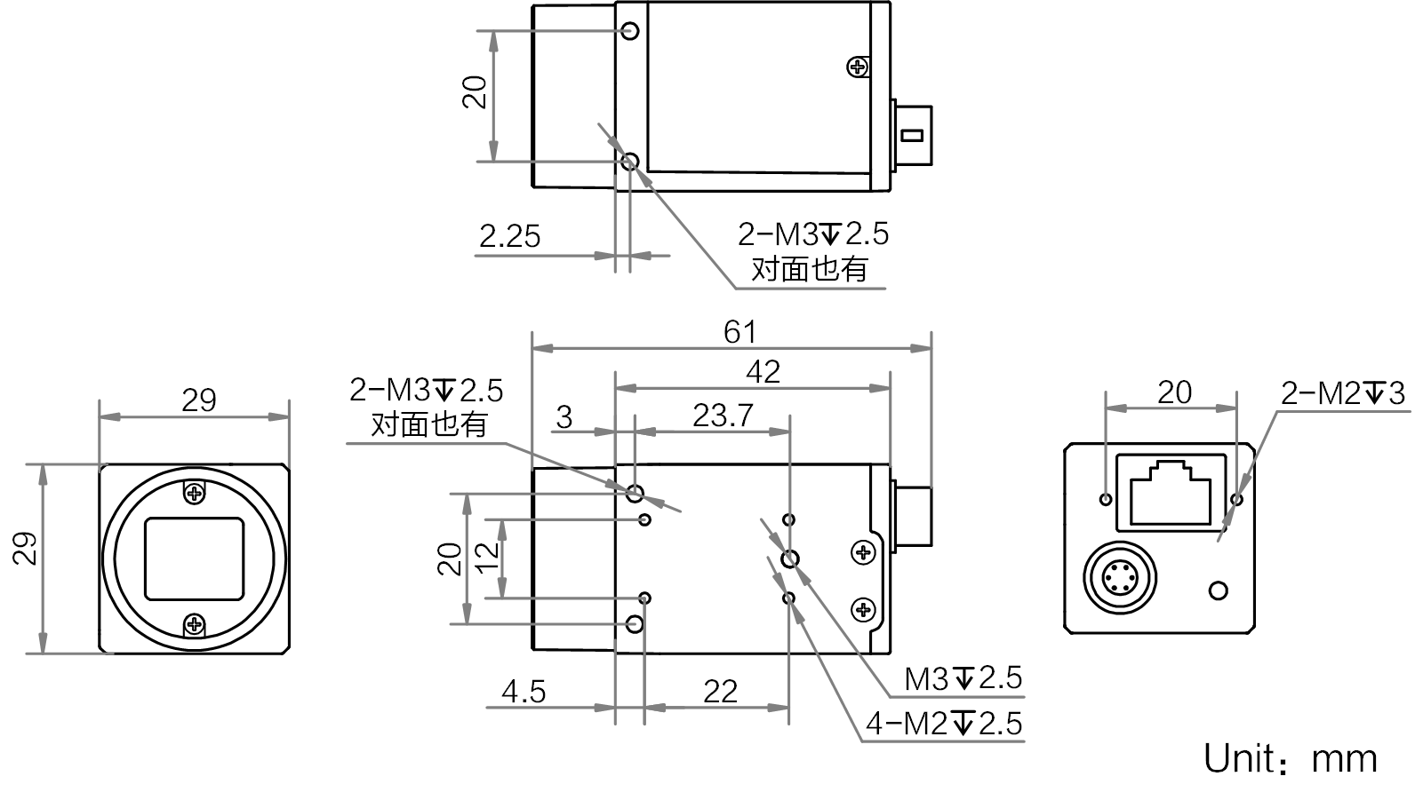 安装方便灵活,相机四面均有安装孔