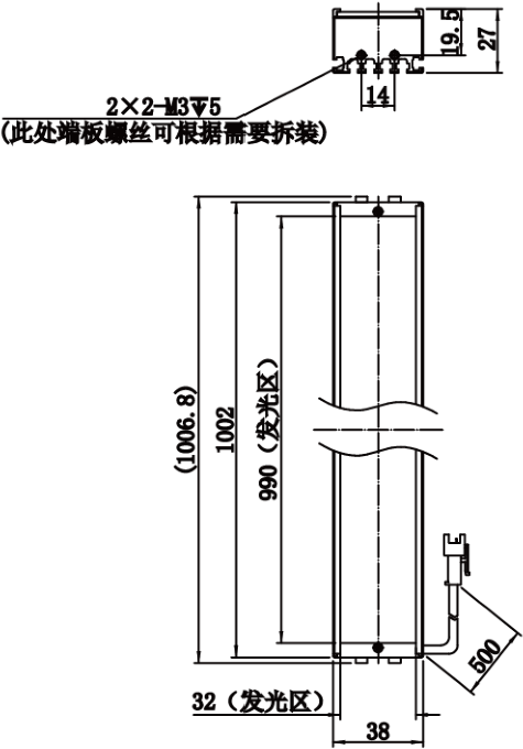 外形尺寸 | 1002 mm × 38 mm × 27 mm |