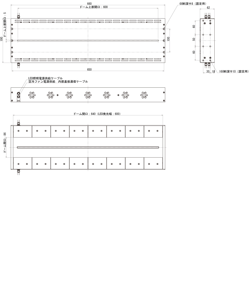 尺寸 | 长 660 毫米 x 宽 182 毫米 x 高 62 毫米 |