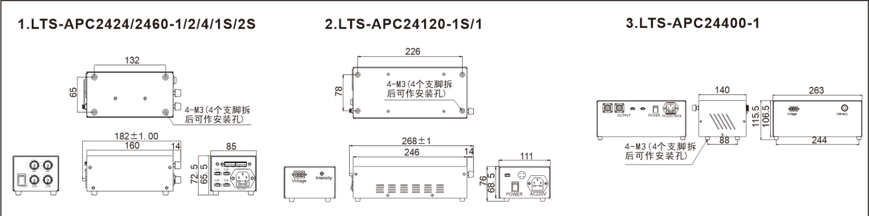 型号 | LTSAPC2424 -1/2/4 | LTS-APC2460 -1/2 | LTS-APC24120 -1 | LTS-APC24400 -1 | LTS-APC48600 -1 | LTS-APC2424 -1M/2M |