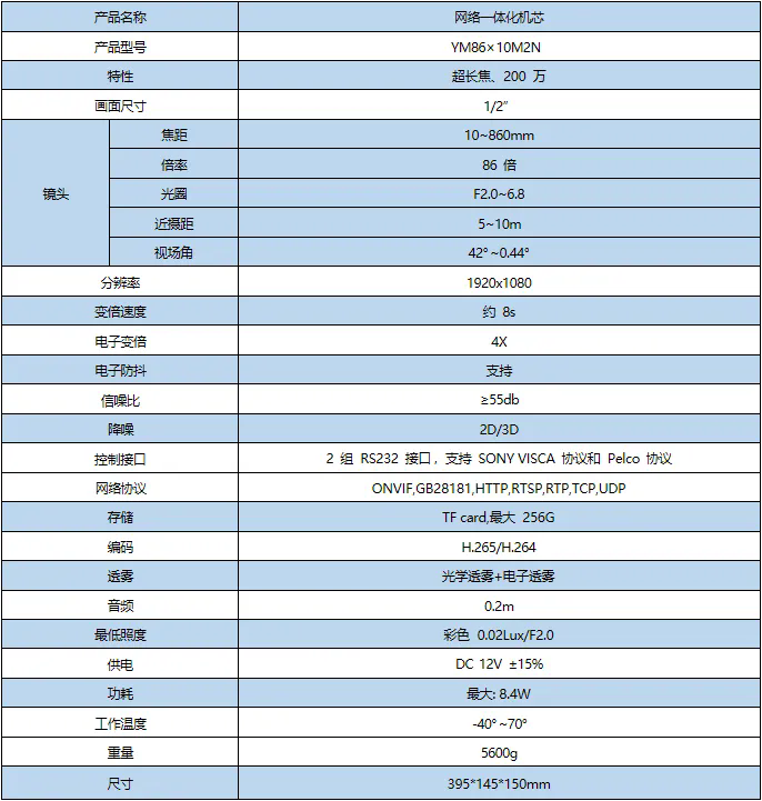 山田YAMAKO YM86x10M2N 网络一体化机芯