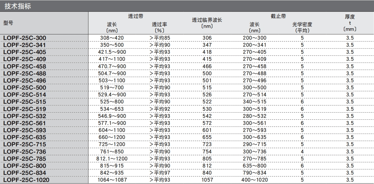 zolix卓立汉光 LOPF-25C-488 长波通滤光片