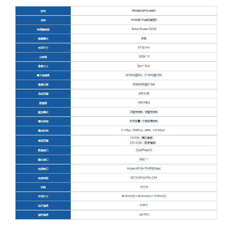 I-Tek埃科 PR16KCXP10-40KC 线扫描相机