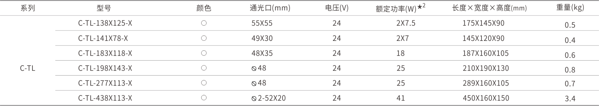 *2 实际产品功率与功率表内容相差±10%为正常范围