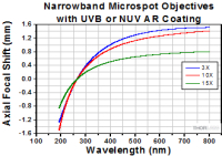 图G3.1:带UVB或NUV AR膜的MicroSpot窄带物镜的轴向焦移。