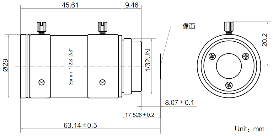 像面尺寸 | Φ11.2 mm(2/3'') |