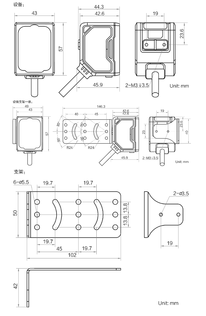 外形尺寸 | 43 mm × 57 mm × 45.9 mm |