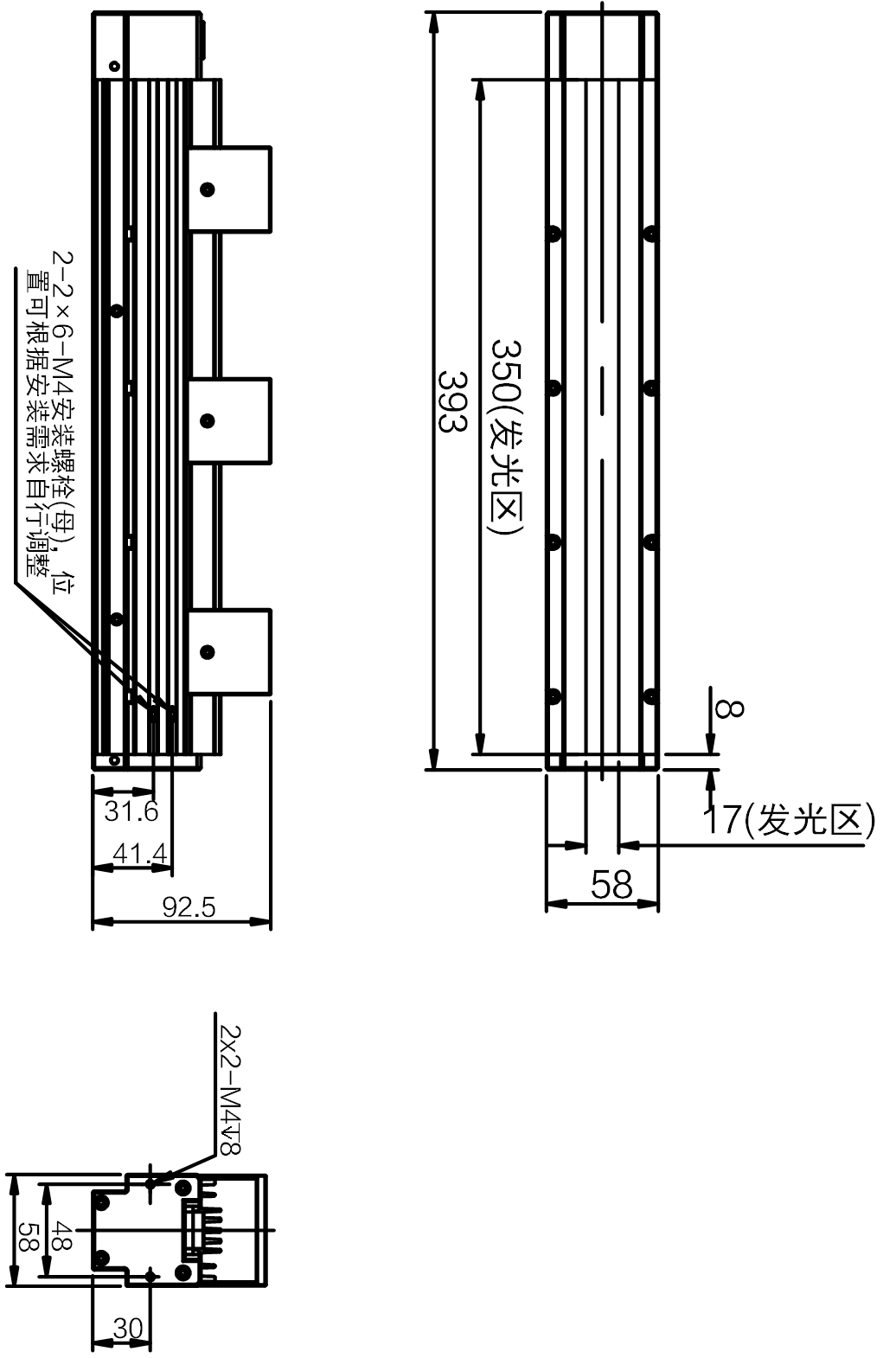 发光区尺寸 | 350 mm × 17 mm |