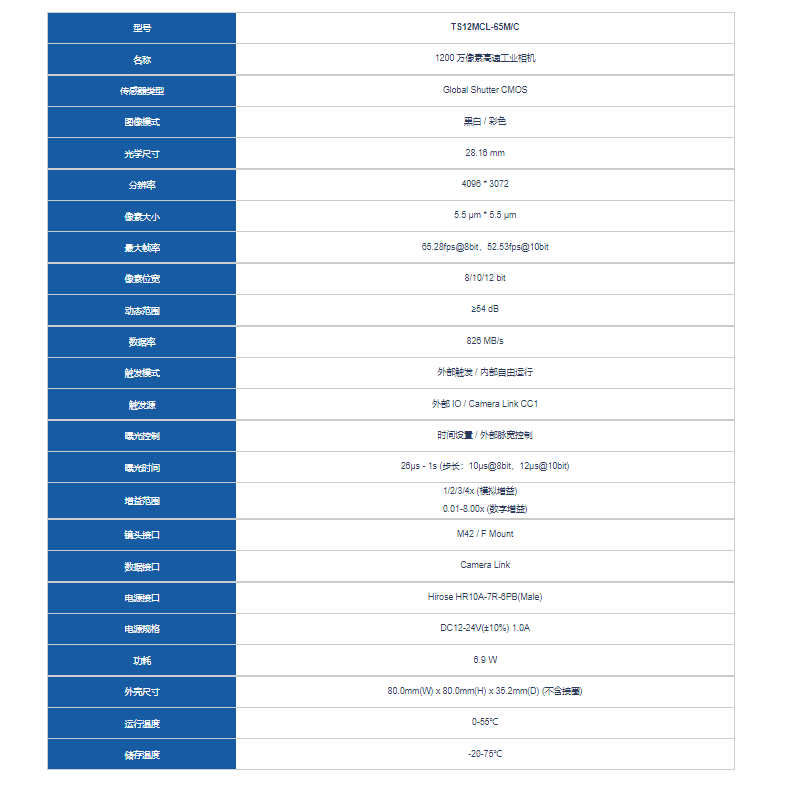 I-Tek埃科 TS12MCL-65M/C 高速面扫描相机