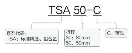 薄型电动直线滑台TSAxx-C系列命名规则:
