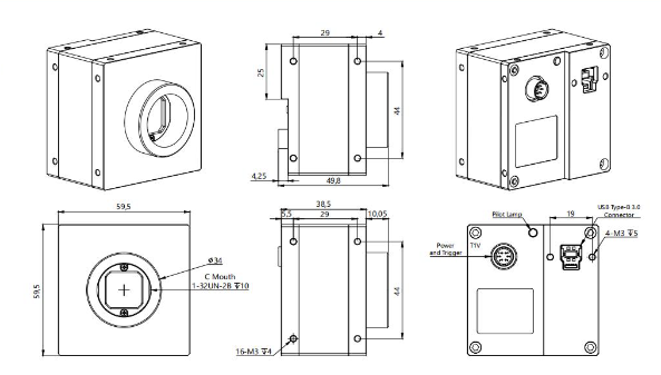 59.5x59.5x38.5mm(不含镜头底座和后壳接口)