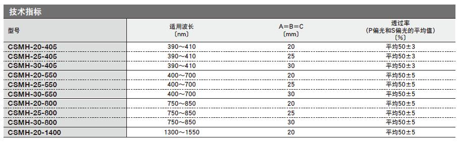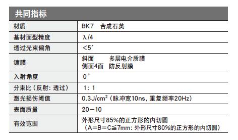 日本SIGMA KOKI紫外激光分束立方体共同指标