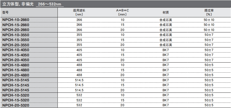 日本SIGMA KOKI紫外激光分束立方体选型表