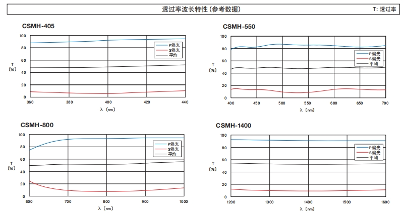 · 和直线偏光的偏光方向无关,反射光和透过光的分束比(1:1)保持不变。