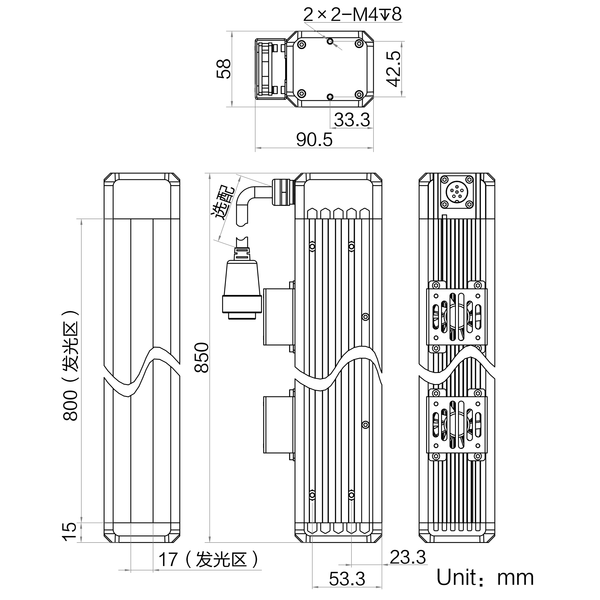 发光区尺寸 | 800 mm × 17 mm |