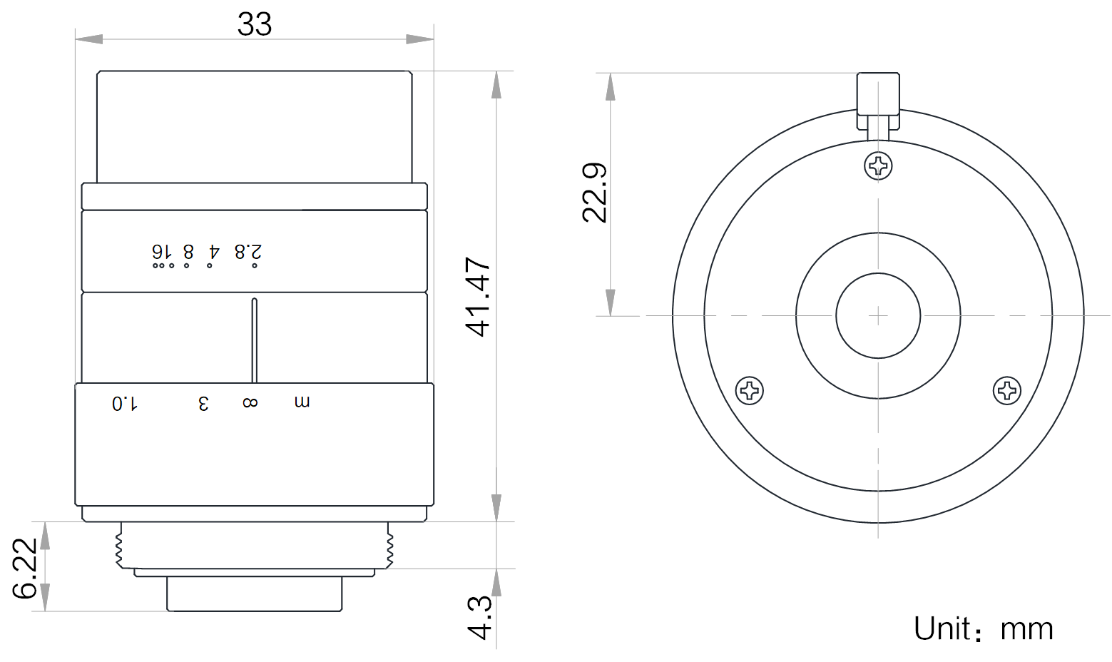 名称 | 40mm,F2.8,1/1.8",600万分辨率,C接口镜头 |