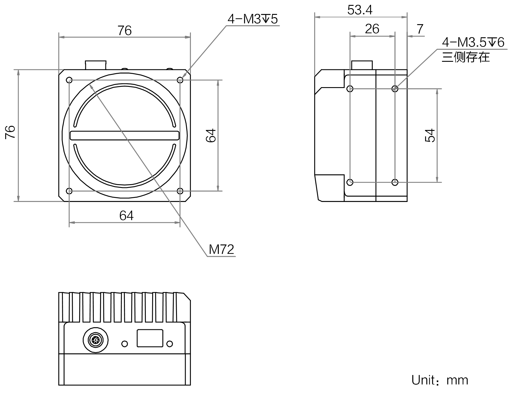 | 结构 | 镜头接口 | M72*0.75,法兰后焦12 mm;可通过转接环转接至F口镜头 |