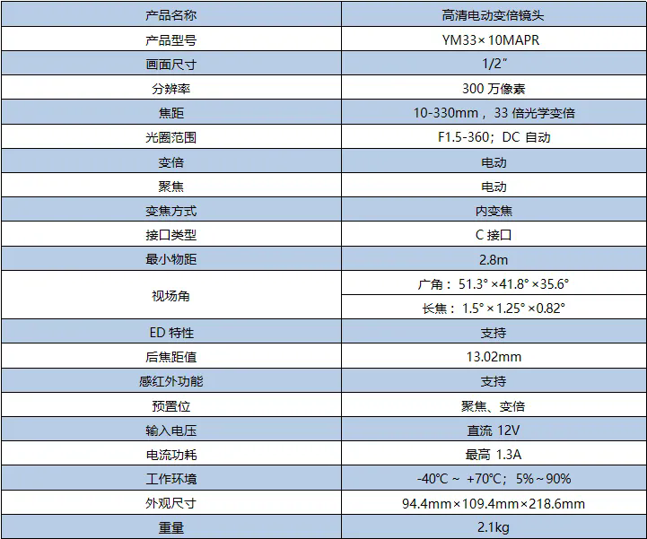 山田YAMAKO YM33×10MAPRF 高清电动变倍镜头