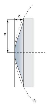 其中R是曲率半径,k是圆锥常数,而An是n阶非球面系数。R的符号取决于透镜表面的曲率中心位于透镜顶点的左边还是右边;正的R说明曲率中心位于顶点的右边,而负的R说明曲率中心位于顶点的左边。比如,双凸透镜左侧表面的曲率半径将被规定为正的,而右侧表面的曲率半径将被规定为负的。