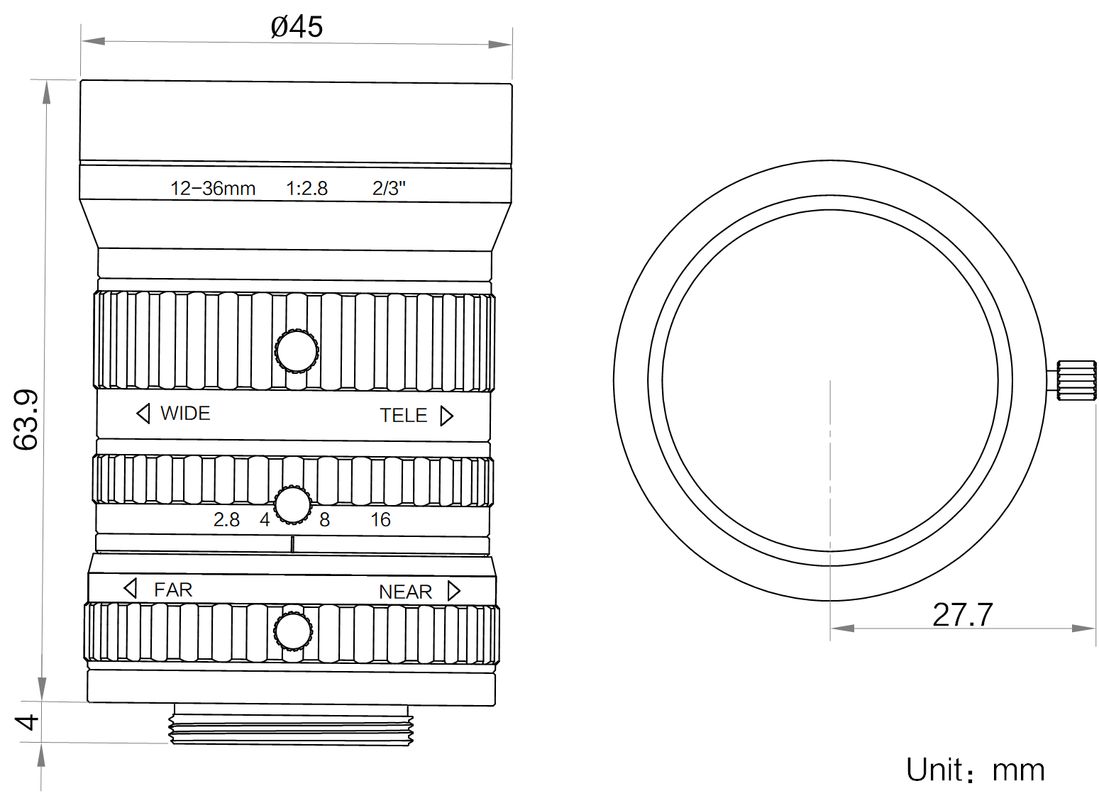 名称 | 12-36mm,F2.8,2/3",500万分辨率,C接口镜头 |