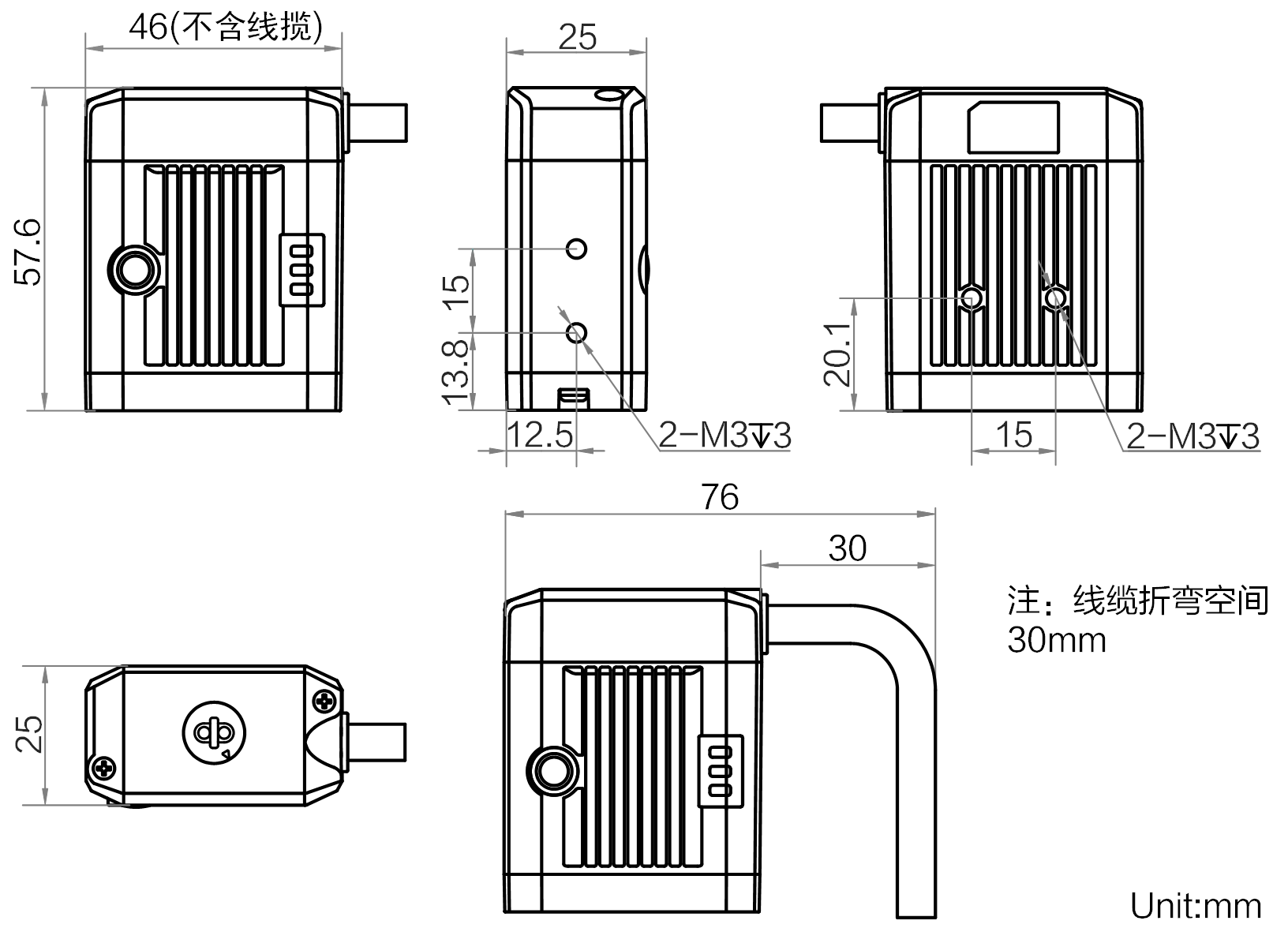 外形尺寸 | 46 mm × 25 mm × 57.6 mm |